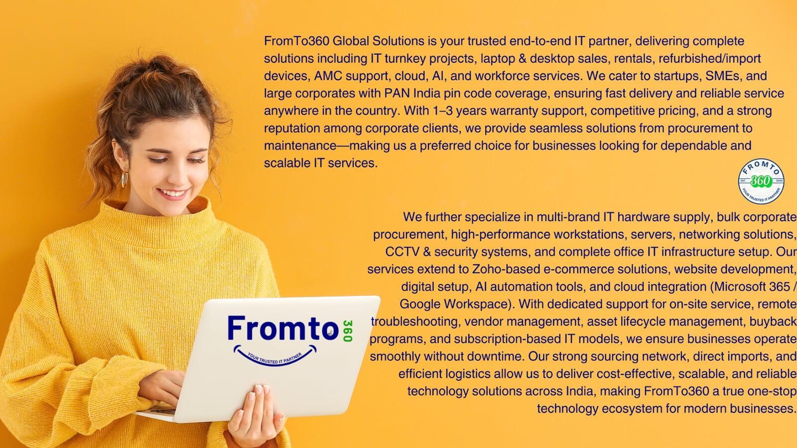 Fromto360 is emerging as one of India's leading Apple Premium Resellers and Service Providers, committed to providing a top-notch experience for all things Apple. With a strong e-commerce presence throughout India and physical stores in Bangalore and Chennai, we strive to offer unparalleled service and support for Apple products.