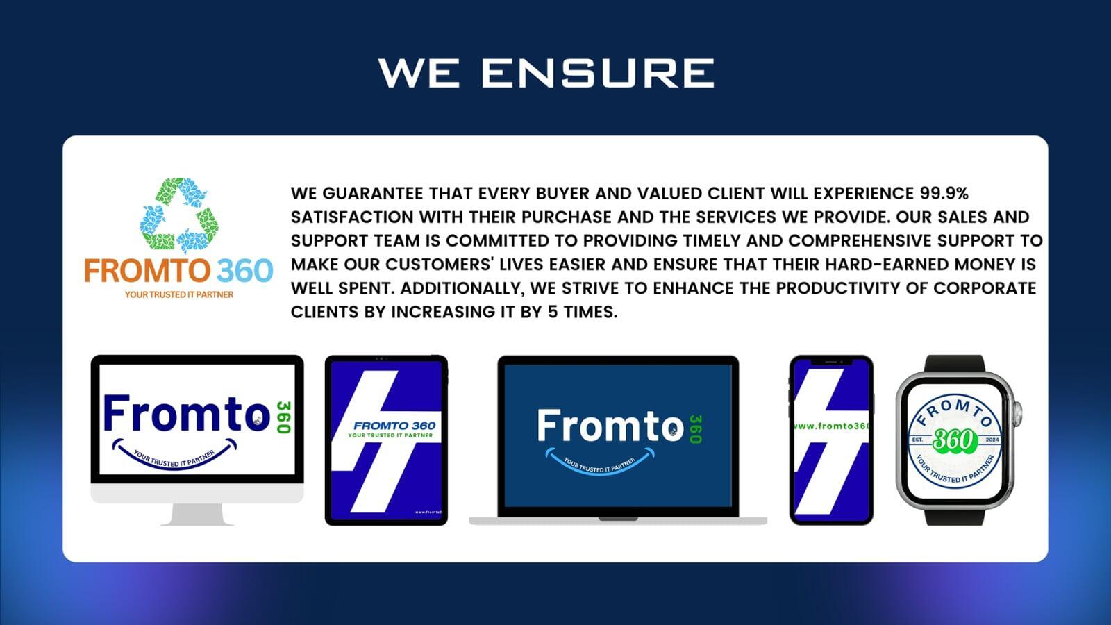 With the market's best trade-in value, Fromto360 guarantees that customers will receive optimal returns when upgrading their Apple devices. We prioritize offering our customers the best deals and making the upgrading process easy and seamless.At Fromto360, we take pride in embodying core values such as exceptional customer empathy, a deep understanding of processes, and an unwavering dedication to providing an unmatched customer experience.